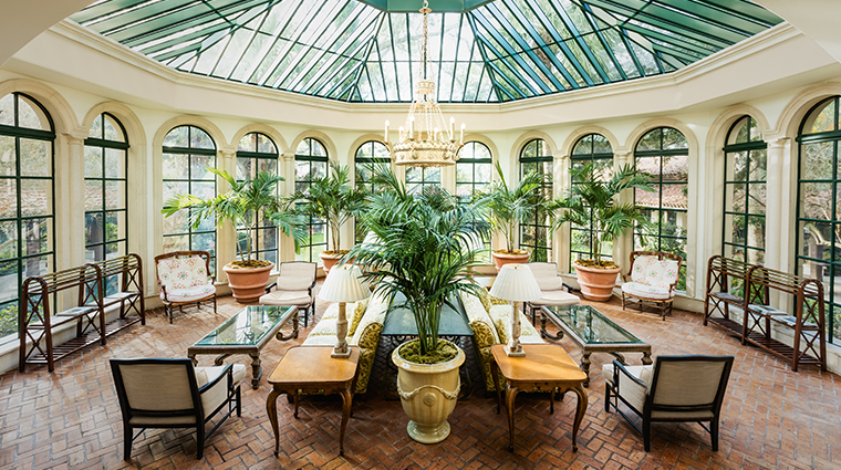 A 2.5-story garden atrium anchors this Georgia coastal retreat, where a preserved olive tree towers above a stone-lined brook and plush seating. Twenty-three treatment rooms deliver bespoke wellness programs spanning nutritional guidance to the signature Pursuit of Happiness ritual. The two-story indoor pool offers panoramic garden views through soaring windows, while a dedicated children's menu ensures younger guests receive their own pampering.