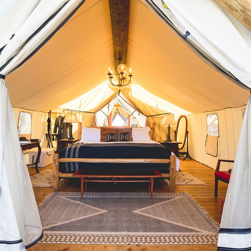 A thousand acres of Colorado ranchland serve as the backdrop for this seasonal glamping retreat, where ten canvas-walled suites feature rain showers, wood-burning stoves, and proper linens. Three Peaks Lodge anchors the culinary program with farm-to-ranch breakfasts, while evenings shift between open-fire grilling and refined tasting menus. Horseback riding, fly-fishing, and mountain biking fill the days—Vail's bustle remains a comfortable thirty minutes distant.