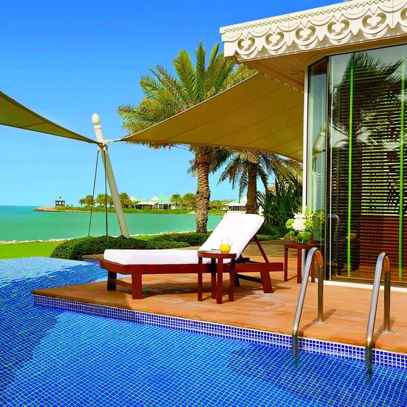 A sprawling 20-acre resort in Manama's Seef district, this property features interiors by Pierre-Yves Rochon and nearly 2,000 feet of white-sand beach fronting a turquoise lagoon. The ocean-inspired spa includes a hammam with four temperature-varied plunge pools, while La Table Krug by Y delivers ultra-exclusive dining in partnership with the storied champagne house. The Burlington Club draws Manama's cognoscenti for whiskey and cigars.