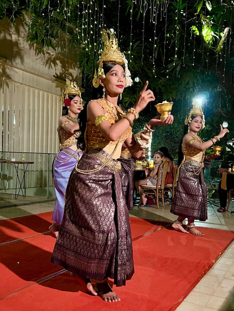 For an even more immersive experience, the restaurant The Mansion offers a mesmerizing performance by the Sacred Dancers of Angkor twice a week, staged outdoors, facing the diners. We were fortunate to witness this during our stay, a timeless moment where the richness of Cambodian culture harmoniously blends with the pleasures of the table.