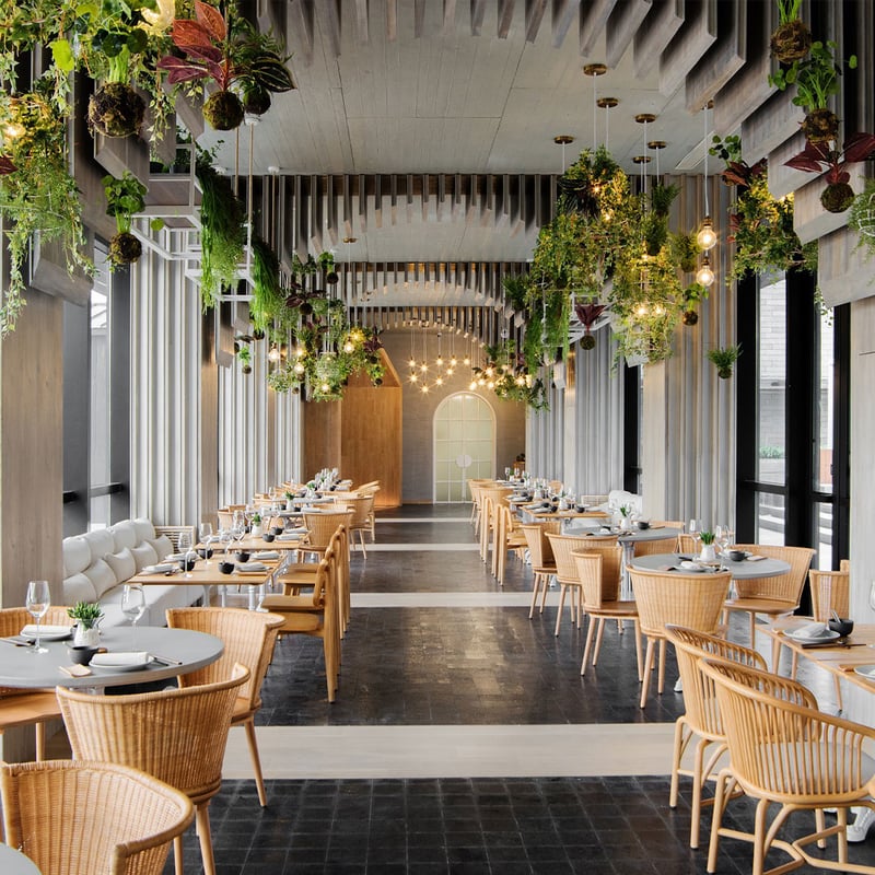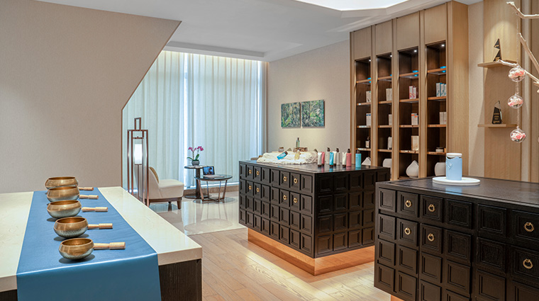 AB Concept's light-filled interiors of sleek oak and muted beige set the tone for treatments drawn from the indigenous Li people's ancestral healing traditions. Nearly thirty therapies—massages, facials, reflexology, therapeutic baths—employ serums formulated with Hainan's native botanicals. The ritual begins in tropical gardens with Zhe Gu herbal tea and a warm towel before guests retreat to airy suites flooded with natural light.