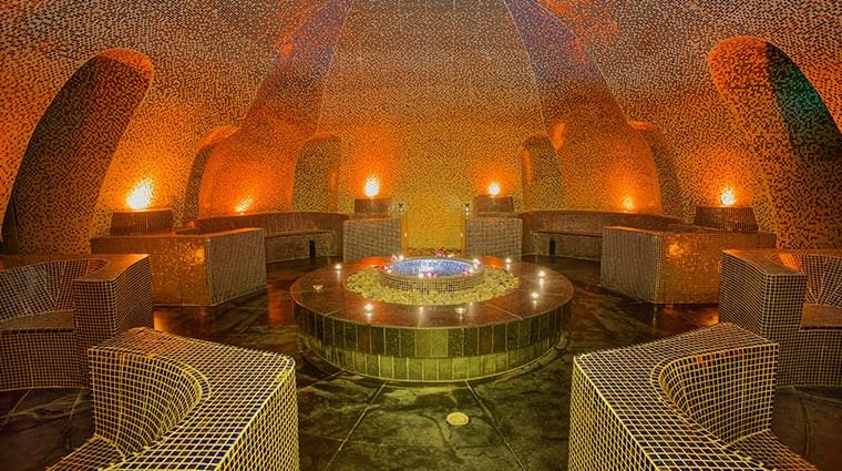 A tunnel-like passage draws visitors from Atlantis Sanya's waterpark energy into AHAVA Spa's cocoon of stillness, where earthy tones and trickling water set an immediate hush. Twenty treatment rooms—each with soaking tub and rain shower—deliver Dead Sea mineral therapies alongside Traditional Chinese techniques, a dual heritage that yields deeply detoxifying results. Steam room, sauna, and a serene lounge complete the unwinding.
