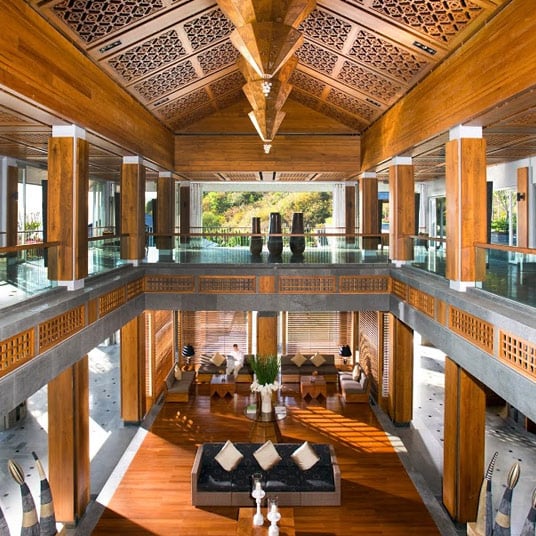 Bill Bensley's open-air architecture spreads across thirty acres of Coral Bay, where freestanding stone villas and wooden pavilions wind through palm groves to a pristine beach. Guest rooms—starting at 560 square feet with private terraces—rank among Hainan's most spacious. The secluded Spa Village offers traditional Chinese medicine and tai chi with a kung fu master, while Yi Yang restaurant showcases authentic Hainanese cuisine. Golfers find dozens of courses nearby.
