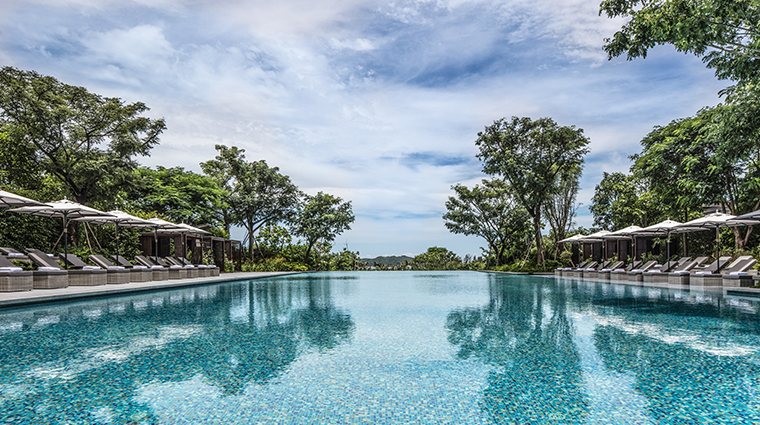 Open-air Thai pavilions frame arrival at this sprawling Yalong Bay resort, where 451 ocean-view rooms look out over a secluded white-sand cove. Four swimming pools—including a beachside infinity pool and a meandering creek pool—thread through maze-like gardens. The 30,000-square-foot spa draws on local botanicals for bamboo rubdowns and heated shell massages, while seven restaurants and the alfresco Sand bar keep evenings varied.