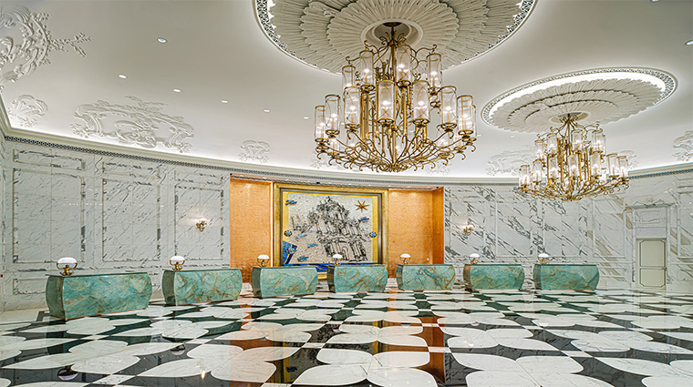 The emerald-green marble lobby doubles as a gallery housing over 300 artworks, including 28 imperial Qing dynasty carpets from a collection of just 300 worldwide. Accommodations rise to the three-bedroom Emerald Villa with feng shui design, heated floors, and private karaoke rooms. Tria Spa offers Macau's sole sound therapy lounge, while Five Foot Road channels 1940s Chengdu banquet culture through refined Sichuanese cuisine.