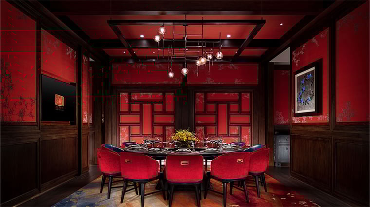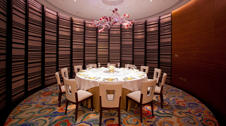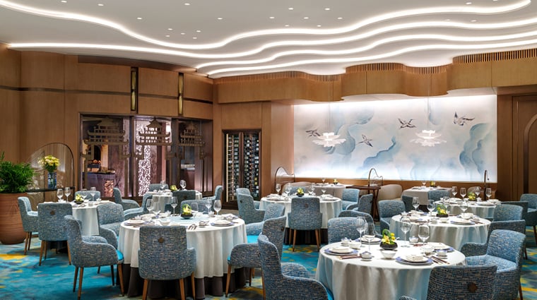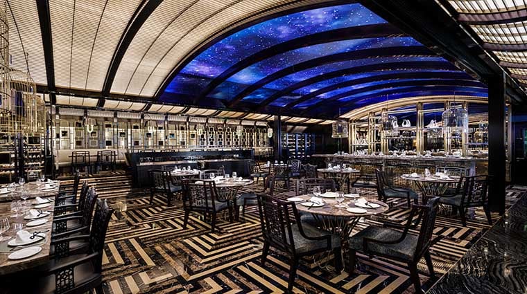 Beneath ceilings alive with 17th-century Chinoiserie motifs designed by Alan Chan, executive chef Ken Chong presents Cantonese haute cuisine rooted in imperial tradition. His crystal tiger prawn arrives with 52-month-aged Iberico ham and quarter-century balsamic, while five private dining rooms—each a distinct artwork—accommodate intimate gatherings. The adjacent Li Bai Bar projects digital landscapes of Macau across its walls, extending the theatrical experience.