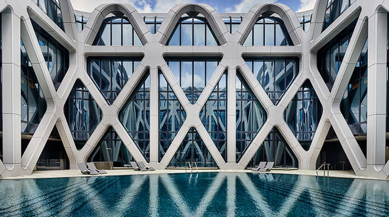 The largest property in its brand worldwide, this 700-room twin-tower hotel between Old Taipa and Coloane showcases regional art throughout—steel sculptures by Tang Mun Kian, antique vases from the 1840s. Chef André Lai's Andaz Kitchen delivers Portuguese-Macanese plates beneath traditional azulejos tiles, while the moody Andaz Bar pours cocktails inspired by local peanut candy. A 62-foot indoor pool complements access to Galaxy Macau's Grand Resort Deck.