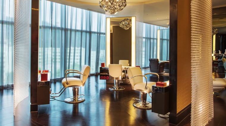 Drawing its philosophy from the Chinese goddess Nüwa and her myth of the five colored stones, this expansive 38,000-square-foot sanctuary channels wood, fire, earth, metal and water into every treatment. The signature Nüwa Elements therapy pairs mineral stones with reiki palm healing techniques following a consultation assessing constitution and chi flow. Vitality pools, a hammam and experience showers complement eight treatment rooms, while a full salon handles grooming essentials.