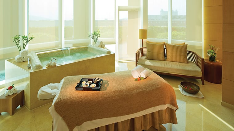 Spanning two stories and 6,000 square feet within the Altira Macau tower, this sanctuary fills its spaces with lime, gardenia, and bergamot while floor-to-ceiling windows frame the South China Sea. Vitality pools, ice fountains, and Vichy showers anchor the hydrotherapy circuit. The signature Intuitive Massage adapts entirely to each guest's needs, followed by tea and snacks in private treatment rooms with no pressure to leave.