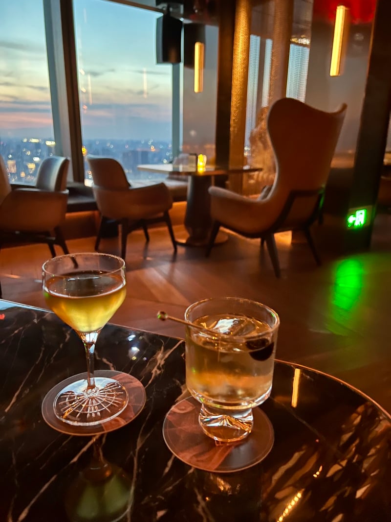 Opened in 2010, The Ritz-Carlton Shanghai, Pudong has established itself as an emblem of luxury hospitality. Located in the heart of the lively Lujiazui financial district, within the prestigious Shanghai IFC complex designed by architect César Pelli, the hotel occupies the top 18 floors of the tower. Its 285 elegant rooms and suites, inspired by 1930s Art Deco style reinterpreted with a contemporary touch by Richard Farnell, offer spectacular views of the Bund and the city. Between its refined spa, renowned restaurants, and exclusive Club-level spaces, The Ritz-Carlton Shanghai, Pudong combines sophistication with modernity. We had the pleasure of visiting, and it was at Flair, its iconic rooftop bar, that we enjoyed an unparalleled view of Shanghai.