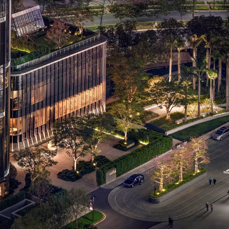 Nature and art motifs thread through this Futian tower, from the lobby's botanical installations to the 4,800-square-foot Ritz-Carlton Suite with its two-story entrance and wraparound skyline panorama. The spa draws on Chinese healing traditions—warm stones, reflexology, aromatic botanicals—culminating in the two-hour Heaven & Earth ritual. A rooftop garden hosts private dinners beneath open sky, while seven pillow choices and Asprey amenities ensure restful nights.