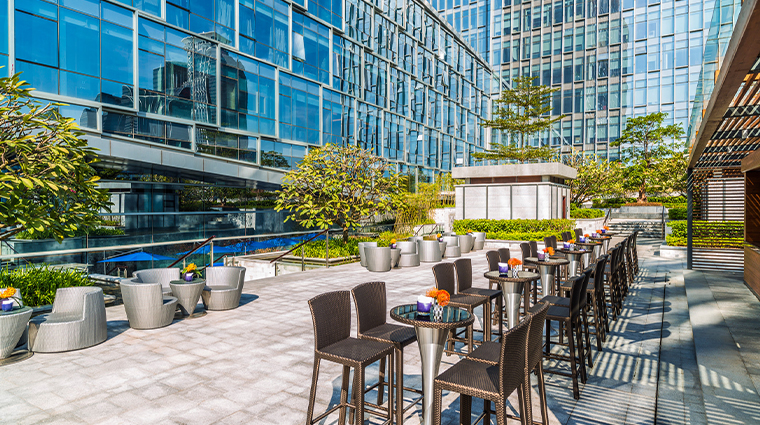 Along Shennan Boulevard's glittering skyline, this 352-room property channels 150 years of English hospitality tradition through four-poster beds, chevron floors, and dark teak furniture accented with Chinese latticework. The jade-marble Chuan Spa applies traditional Chinese medicine's five elements to each treatment, while an 82-foot indoor lap pool with underwater lighting complements tropical gardens surrounding the outdoor terrace. Cantonese fine dining and signature British high tea complete the offering.
