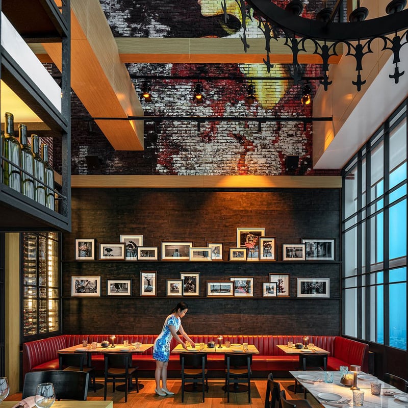 Crowning a sharply pointed 48-story tower, this Yabu Pushelberg-designed hotel delivers Shenzhen's most dramatic urban panoramas through floor-to-ceiling glass. The Attic, a speakeasy-style bar perched at the building's apex, rewards evening visits with cocktails and city lights stretching to the horizon. Below, a well-lit indoor pool and spa with sauna and jacuzzi offer respite for business travelers seeking polished luxury between meetings.