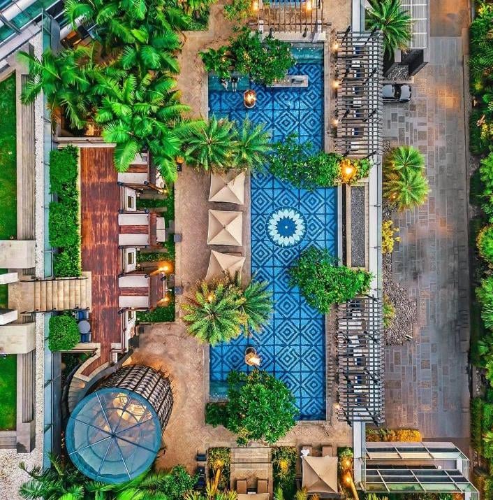Alexandra Champalimaud's interiors channel Jakarta's spice-trading past through gilded accents, statement chandeliers, and an impressive Indonesian art collection — a larger-than-life gamelan ensemble greets arrivals at the entrance. The 125 suites average 660 square feet with marble bathrooms and standalone tubs. Bill Bensley's resort-style pool, ringed by frangipani and fire torches, and a spa with futuristic vibrational-therapy loungers complete the picture for business travelers seeking polished refuge.
