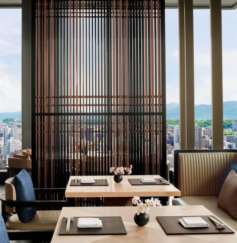 Kyushu's first Ritz-Carlton crowns Fukuoka's tallest tower, its floor-to-ceiling windows framing the Genkai Sea and Hakata Bay in cinematic sweeps. Guest rooms from 538 square feet showcase commissioned textiles from the city's oldest kimono-weaving atelier alongside works by local artists. Four restaurants—Genjyu for kaiseki, Viridis for European, Bay for wood-fired tapas—complement a spa drawing on regional botanicals, rice, and mugwort.