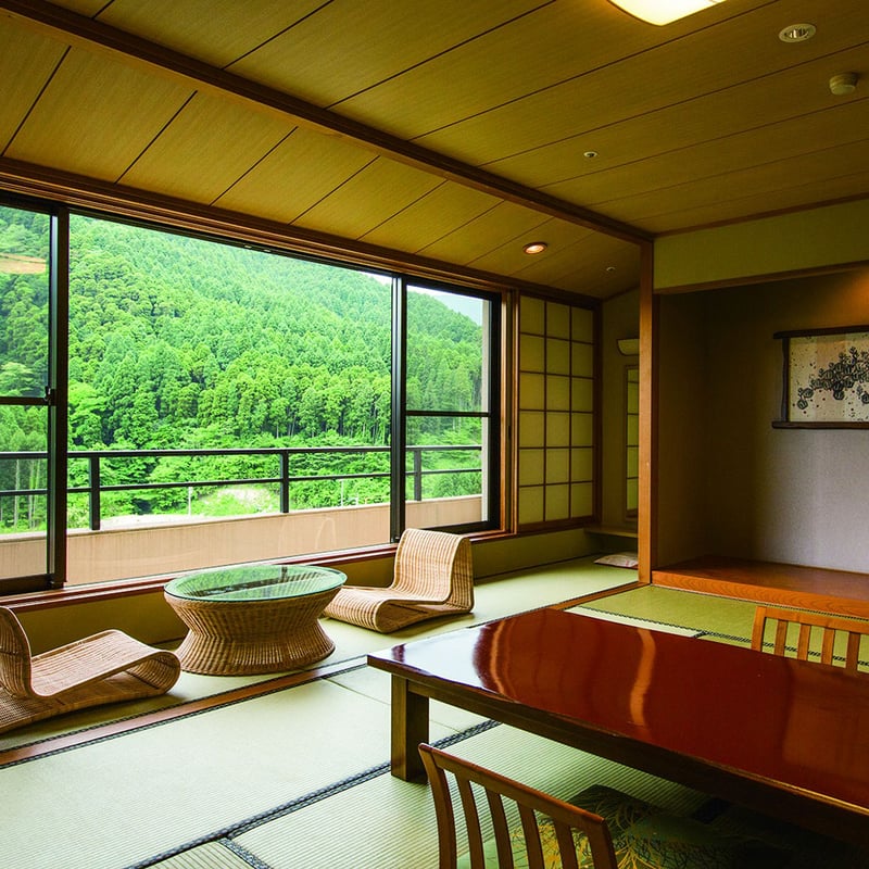 Furuyu hot spring's naturally tepid waters—hovering around 100°F—allow for prolonged, meditative soaks across six outdoor baths, from fragrant hinoki cypress tubs to a cascading waterfall bath. Guest rooms frame verdant mountain panoramas, while Atelier accommodations display winning pieces from the ryokan's art competition. Two locavore restaurants, one Italian and one Japanese, anchor the culinary program with seasonal regional ingredients.