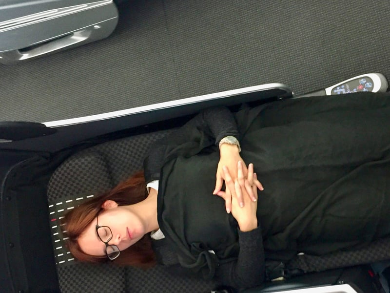 After priority check-in, we took an hour to relax in the lounge at Narita airport. Once on board, we tested the seats which would be our little cocoon during the long flight. They were comfortable but unfortunately not among the best I've experienced in business class.