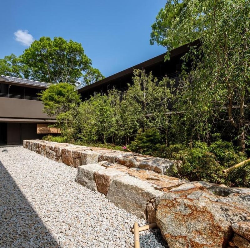 At the threshold where Nara's urban fabric dissolves into the ancient woodlands of Nara Park, this 30-room retreat channels regional azekura architecture through darkened timber and sea-blue tones lit by flickering lanterns. Every guest room opens onto a private hot-spring onsen, while the spa draws on traditional herbal treatments. Gardens and family-friendly proportions make it equally suited to couples and multigenerational groups.