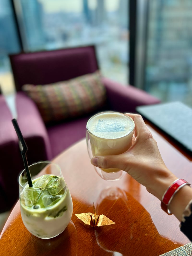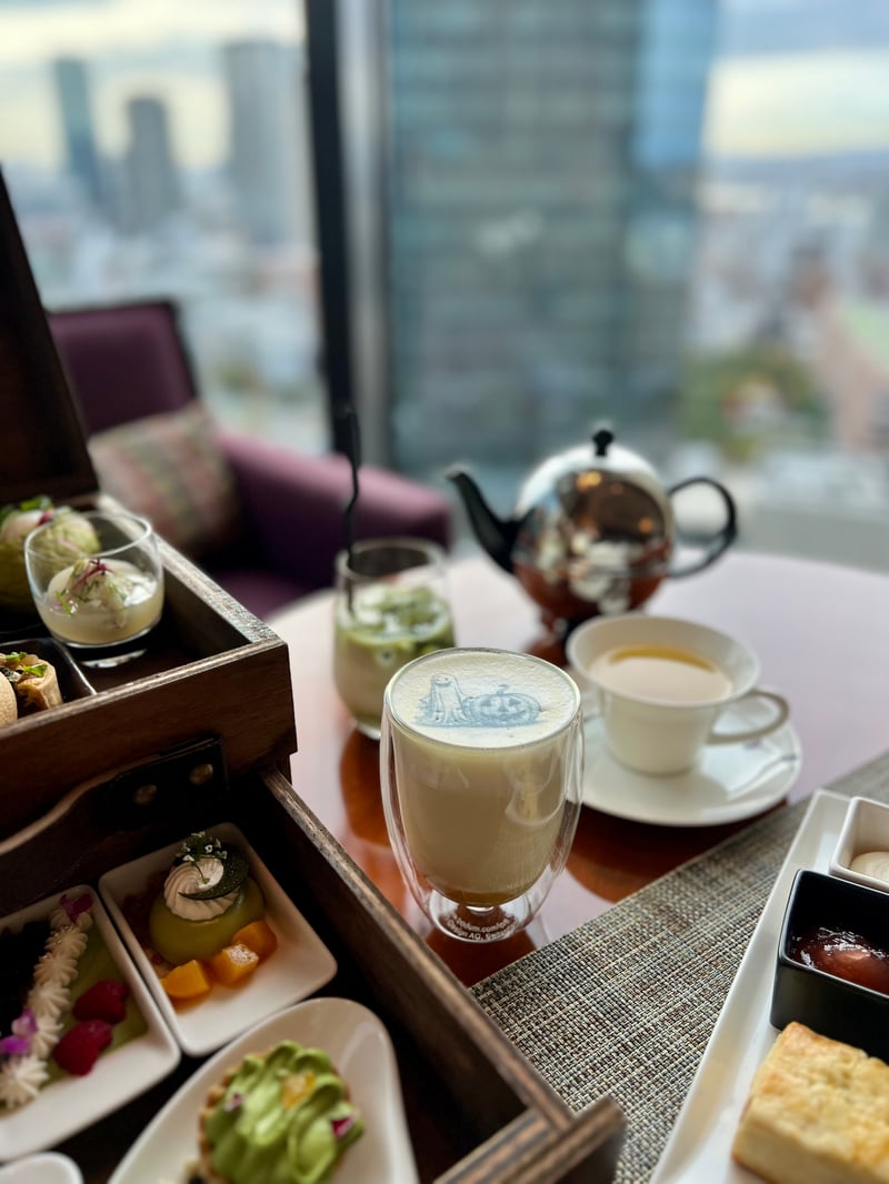 For beverages, we chose the TWG signature InterContinental Osaka Beppu Original Blend, with fruity notes of strawberry and apple on a Ceylon base, along with a Jasmine Queen tea boasting exquisite floral elegance. Seasonal drinks added a playful touch: an iced Vanicha Latte, a creamy blend of vanilla and matcha, and a silky, lightly spiced Pumpkin Latte, perfect for the season. Between the beauty of the service, the play of textures, and the panoramic view over Osaka, this tea time was a sensory, soothing, and poetic experience celebrating the quintessence of matcha in all its forms.