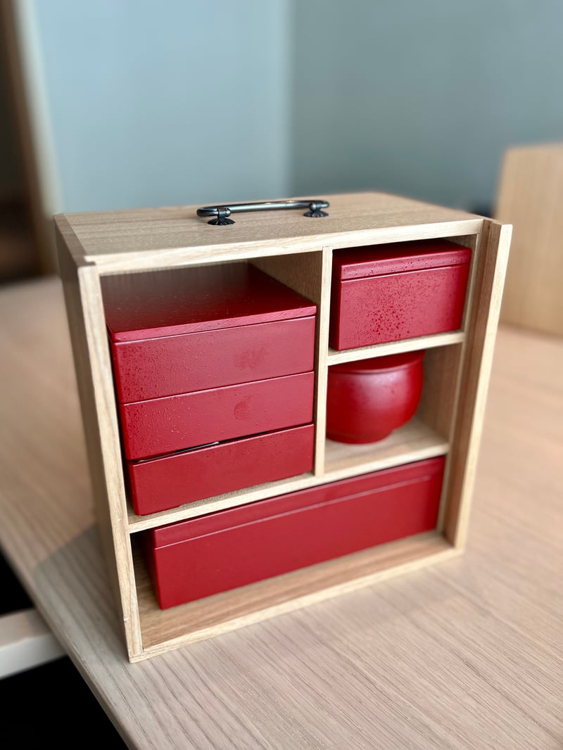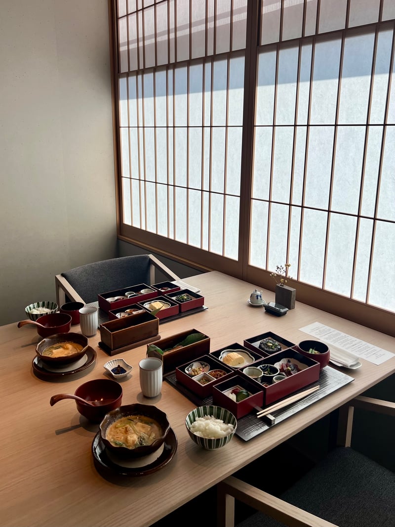 Breakfast at FUFU Tokyo Ginza is an elegant and refined experience, served in a multi-tiered wooden box that unfolds like a culinary treasure. As soon as the server opens this box, a world of delights presents itself: dishes carefully arranged across four levels, each element meticulously described in a paper guide, inviting a ritual of discovery. This breakfast, named Igayuuzen, offers an exquisite harmony of flavors and textures: delicate starters such as wakame and steamed egg, varied side dishes ranging from dashi-flavored rolled omelette to grilled eggplant, along with sardines simmered with sansho pepper. Everything is completed by a comforting miso soup and rice cooked in a traditional pot. To conclude this morning feast, a sweet note of melon is served for dessert, making this breakfast as memorable as the city that hosts it.