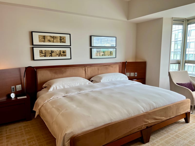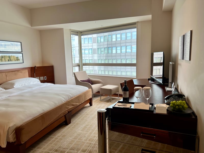 The room we stayed in, featuring a king-size bed and Club access, perfectly illustrates this ambiance. With a surface area of 42 m², it offers an ideal balance between comfort and functionality. Its clean layout, warm woodwork, and soft fabrics create a welcoming space, while the Egyptian cotton bedding ensures high-quality rest. The large window wall opens onto Tokyo's rooftops, making the room bright and pleasant at any time of day.