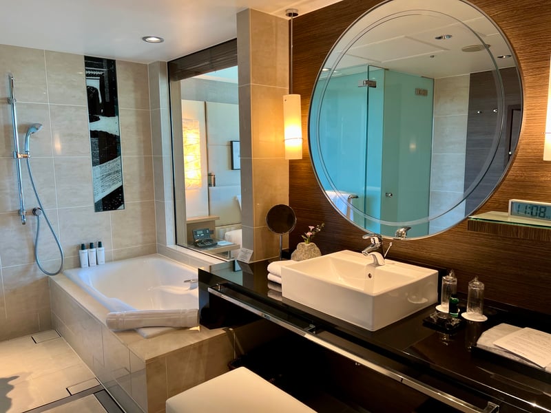 At the EXECUTIVE HOUSE ZEN, each room is an invitation to serenity, with 87 beautifully appointed accommodations, including eight suites. The décor harmonizes bold black accents, evoking ink strokes on paper, with subtly placed artwork adorning the walls. Natural elements such as bonsai trees, miniature rock gardens, and antique Asian pottery add a touch of timeless elegance. We stayed in an Executive Deluxe Double, a spacious 50 m² room offering breathtaking views from both the bedroom and bathtub. The bathroom extends this sanctuary of relaxation, featuring Salvatore Ferragamo bath products for the ultimate wellness experience. Located on the 11th and 12th floors, the rooms offer stunning panoramas, adding another dimension to this already sumptuous setting.