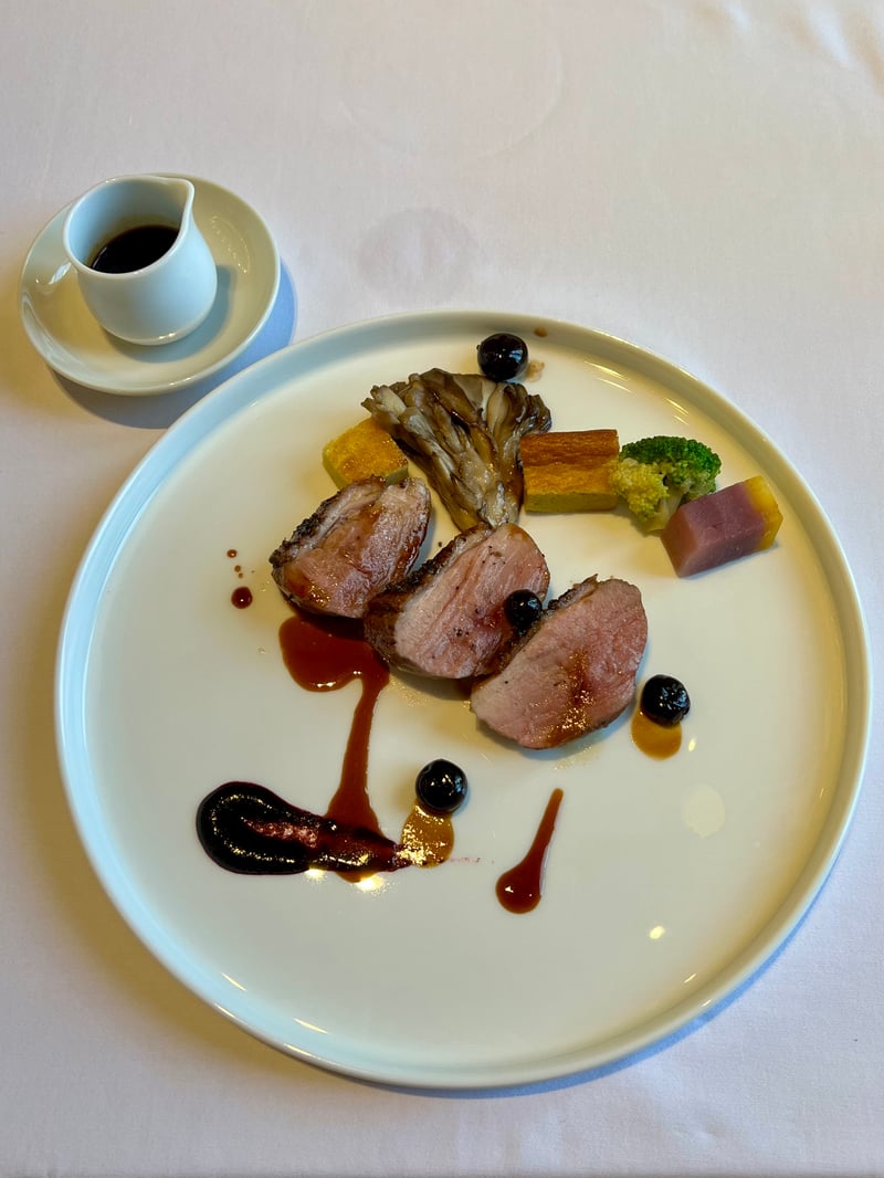 The third act of this feast highlighted delicately seared swordfish, complemented by Iberian pork and seasonal vegetables, where each bite revealed perfect flavor mastery. A refreshing and zesty gaspacho soup then provided a most pleasant interlude, preparing our palates for the following courses. As the main course, I savored a wonderfully prepared fish of the day, where the delicate flesh perfectly matched its cooking. Meanwhile, my husband succumbed to the tenderness and richness of flavors of a TOSA duck, prepared with remarkable precision.