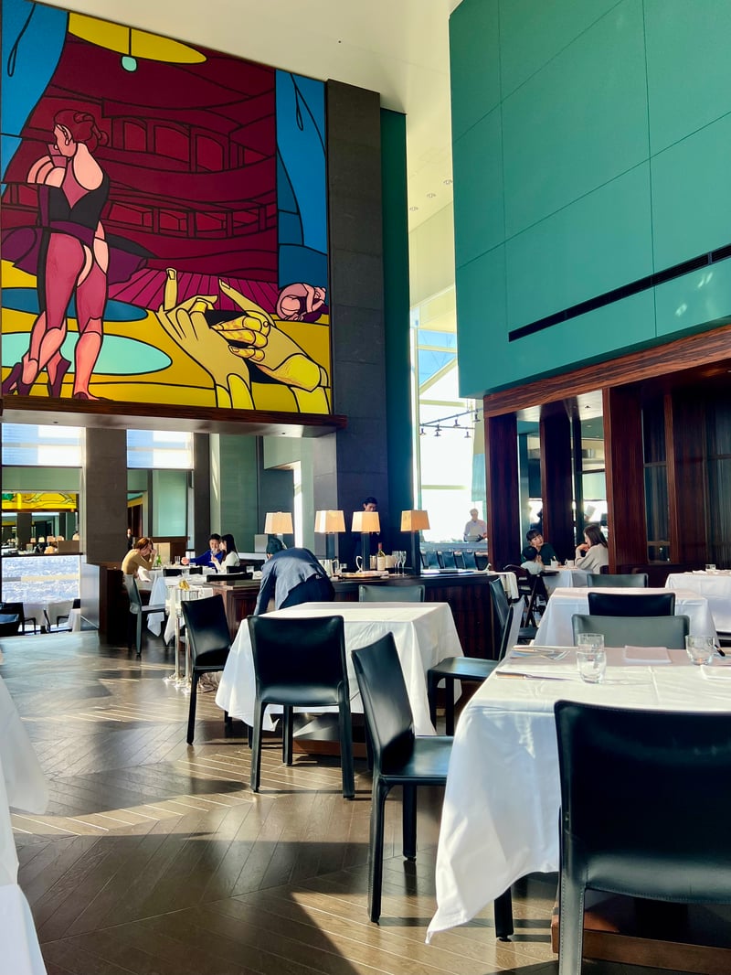 At the hotel's summit, New York Grill stands out with its unique style, fusing contemporary elegance with a laid-back touch, celebrating the vibrant essence of New York. Located on the 52nd floor, this restaurant offers an unparalleled gastronomic experience, with an open kitchen that engages the senses and jazz concerts by the bar that add a refined sonic ambiance. The elegant black and white uniforms, immaculate white tablecloths, and ebony chairs contribute to a sophisticated atmosphere, while the immense bay windows reveal a breathtaking view of Tokyo's skyline. Bold frescoes by Valerio Adami depicting iconic New York landmarks reinforce the venue's artistic identity. The menu features timeless dishes such as premium Japanese beef and exceptionally fresh seafood. An impressive selection of over 1,600 wines elevates each meal, transforming the culinary experience into a true celebration of the energy and style of the city that never sleeps.