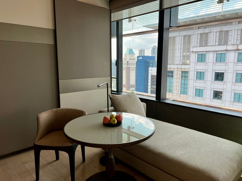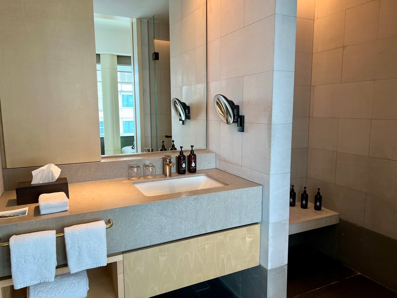 Among the categories offered, we stayed in an Emerald Room King which perfectly illustrates this blend of comfort and sophistication. Spacious at 36 m², it is arranged to meet the needs of travelers seeking elegance and practicality. Its vast space, enhanced by a divan and a round table, offers an ideal setting for relaxing, working, or enjoying a meal in peace. With its panoramic view of the city, it becomes a privileged cocoon in the heart of Singapore, where every stay is transformed into a unique and unforgettable experience. Finally, the sublime bathroom enhances the experience with COMO Shambhala products and a rain-effect shower, turning every daily ritual into a spa-like moment of relaxation.
