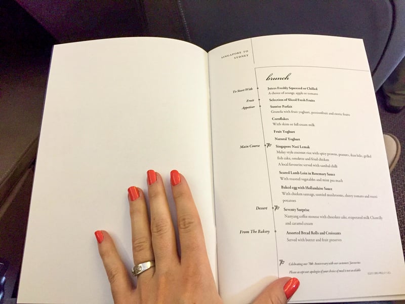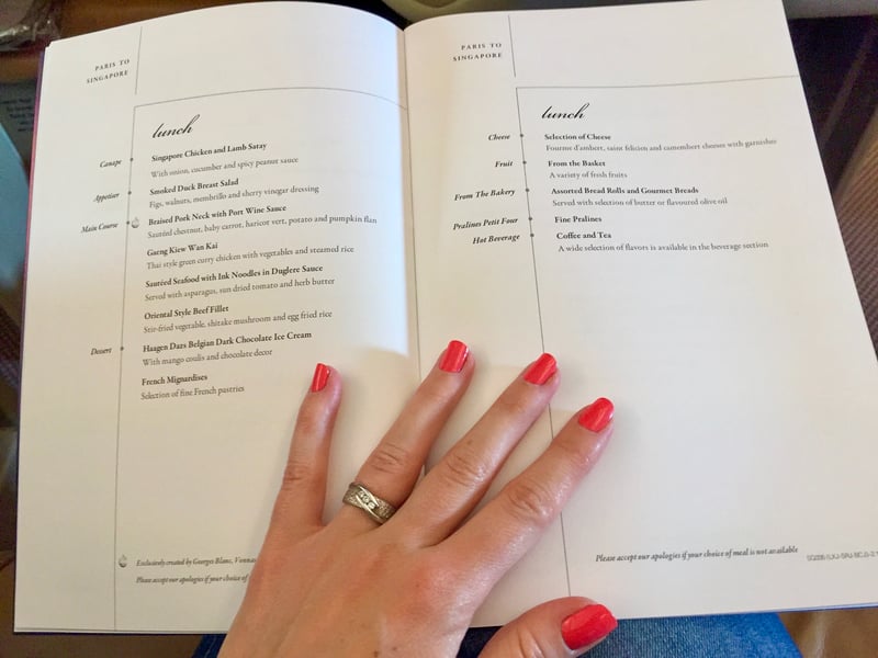 As for the dining, the level is excellent for business class! You can choose between singaporean and western cuisine, so there's something for everyone.