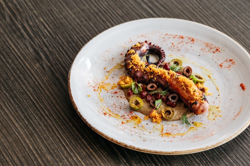 The second starter, 'Coral,' is a true celebration of South American biodiversity, marrying traditional ingredients with an exceptional artistic presentation. This dish is mainly composed of mashua, a little-known Andean tuber, accompanied by quinoa, the emblematic cereal of the region. The huacatay salsa, made from a Peruvian aromatic herb, offers bright notes and a slight touch of spiciness that enlivens the ensemble, while marinated seaweed adds an umami dimension and an interesting texture that evokes the depths of the sea. Each component is carefully arranged to mimic a coral reef, creating not only an explosion of flavors but also a captivating aesthetic.