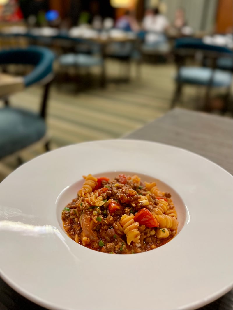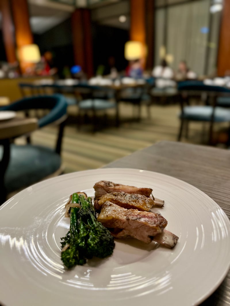 The pasta service allowed us to explore two complementary worlds. On one side, the smoked ricotta ravioli, enhanced by fresh basil and a shower of melting parmesan, revealed a delicate harmony between sweetness and woody character. On the other, the radiatori with smoked meat ragout offered a generous and rustic dish, where the richness of the sauce contrasted with the freshness of new onions, for a modern and tasty interpretation of pasta alla bolognese. The main course then came to perfect this culinary partition. The grilled lamb ribs, juicy and perfectly browned, were accompanied by crunchy broccolinis. Alternatively, the marinated barramundi fillet offered a lighter version, heightened by a simple lemon wedge to exalt its finesse.