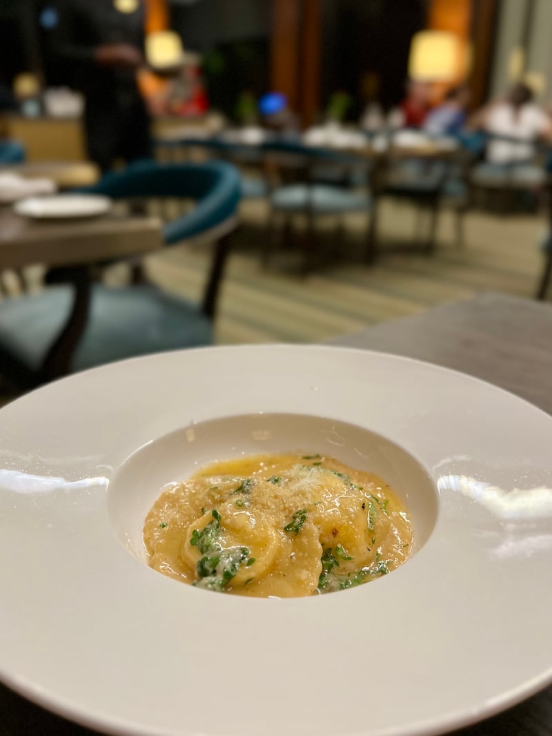 We then savored the Zuppa di Giorno, a velvety pumpkin soup enhanced by a few strands of green oil, giving it a subtly herbaceous dimension. This warm and comforting break provided a perfect transition to the pasta dishes, while illustrating the elegant simplicity of traditional Italian cuisine.