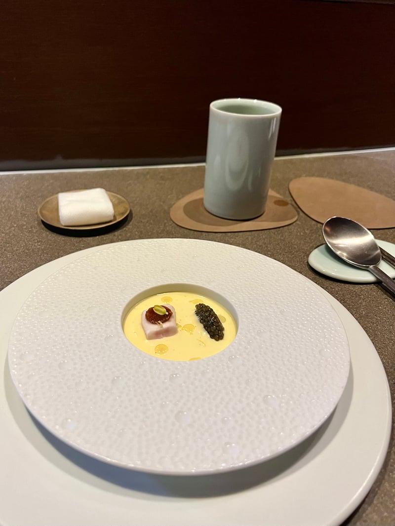 The menu at YUN is a true gastronomic journey, designed to surprise and delight the senses at each stage. The meal opens delicately with a dish of fermented foods, inviting diners to gently explore the authentic and complex flavors of fermentation, a central process in the restaurant's cuisine. This prelude sets the tone, preparing the palate for the subtlety and richness of the following dishes.