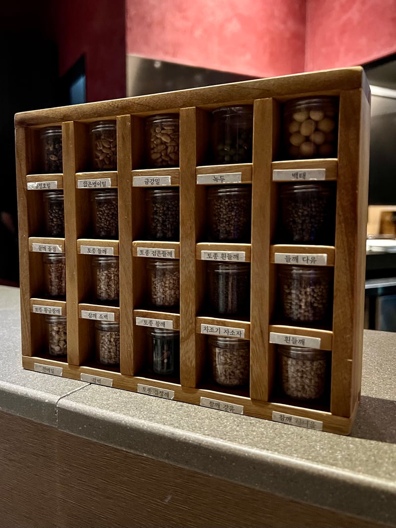 At the heart of YUN Seoul lies a space echoing Kim's artisanal approach: a vast refrigerated laboratory where over 500 ingredients are meticulously stored, labeled by year of production and origin. Among them are pickles, dried vegetables and seeds, as well as meats and fish aging sometimes up to seven years. Kim Do-yoon keeps nearly 90 varieties of sesame and perilla seeds here, showcasing his continuous quest for authenticity and excellence. At YUN, each dish becomes a culinary exploration where respect for the ingredient marries boundless creativity.