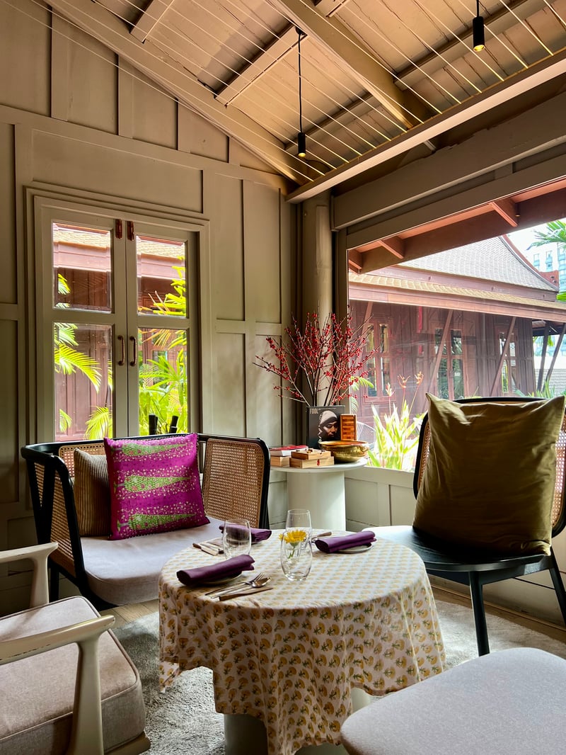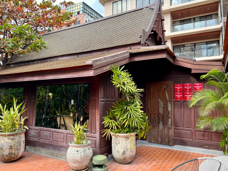 Gaa restaurant is a true gem nestled in the heart of Bangkok, offering a refined culinary experience in a setting that marries tradition and modernity. Housed in a beautifully restored 60-year-old traditional Thai house, the establishment preserves its original architecture with a teak framework, a steeply pitched roof and an open veranda. This heritage setting is enhanced by minimalist interiors and clean lines that add a contemporary touch, while dim lighting accentuates the elegance of the space. Surrounded by lush vegetation, the house evokes a haven of peace, offering diners an exceptional culinary experience at the crossroads of local culture and modern innovation.