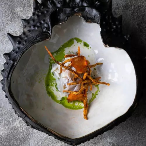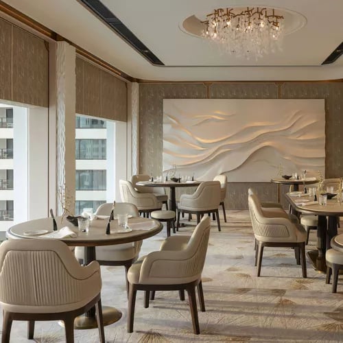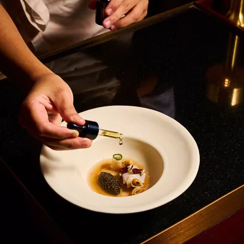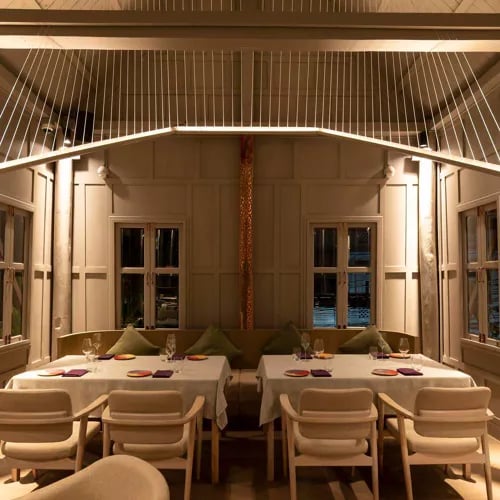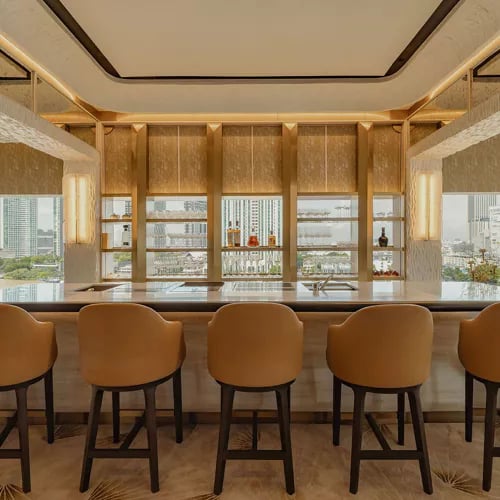 On the 61st floor of Lebua, this two-Michelin-starred French Contemporary table pairs theatrical open-kitchen craft with floor-to-ceiling Bangkok skyline views. Chefs compose a procession of hot and cold plates centered around artisan ingredients from a local farm and fine international produce; an expert sommelier orchestrates pairings throughout. The calm, sophisticated dining room angles every seat toward the city lights, closing with an impressive cheese trolley that caps the evening.