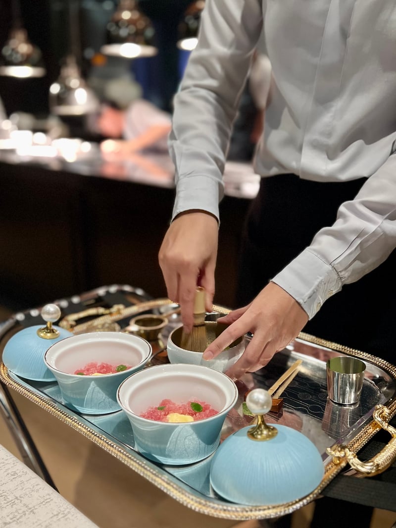 We had the pleasure of discovering the new seasonal menu "Autumn Guestronomic Dining Journey," a true invitation to culinary travel. This rich and nuanced tasting menu celebrates the finest products of autumn, meticulously crafted to give birth to a gastronomic narrative of great coherence. Three tasting experiences are offered to satisfy all desires: the "Mizu" experience with 7 courses, the "Chikyu" experience with 6 courses—which we chose—and the "Ku-Ki" experience with 4 courses. Additionally, an à la carte menu also allows guests to compose their own journey according to their preferences.
