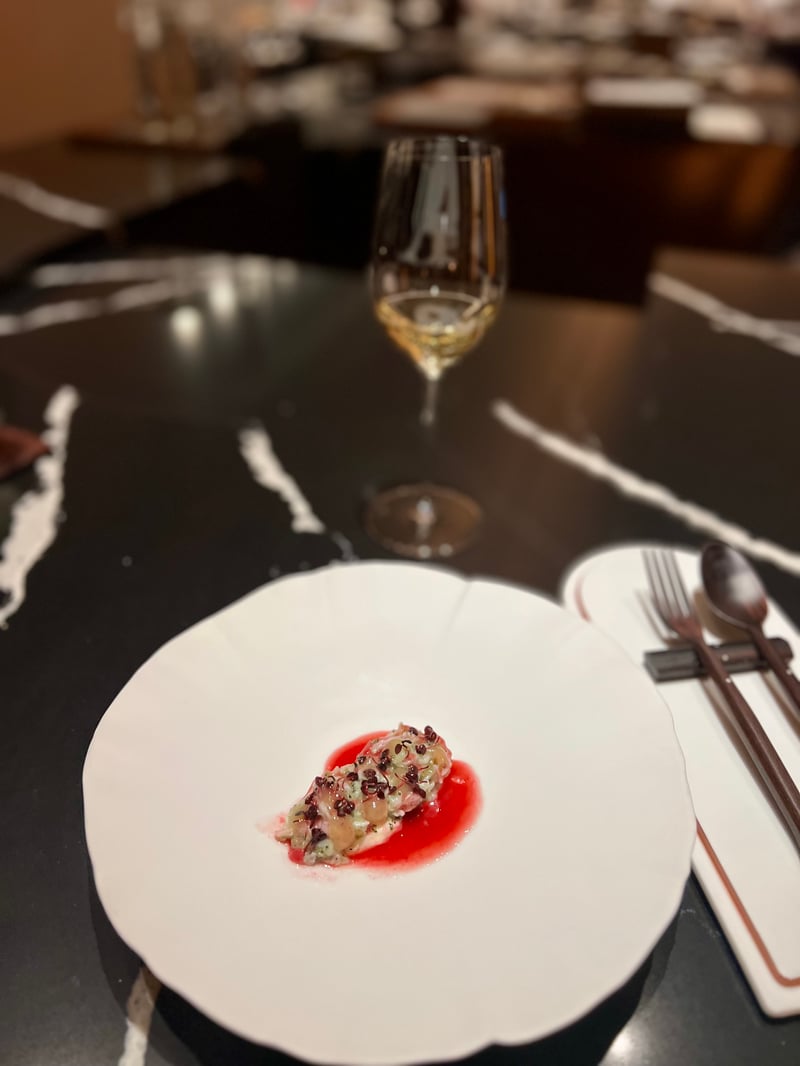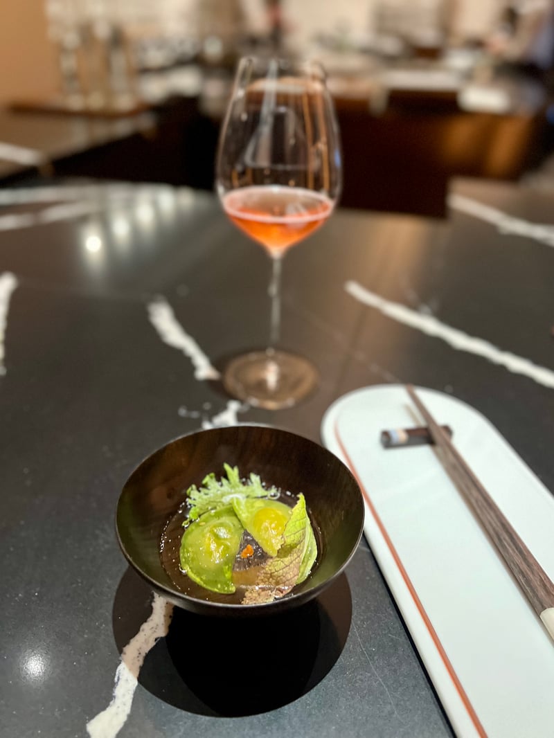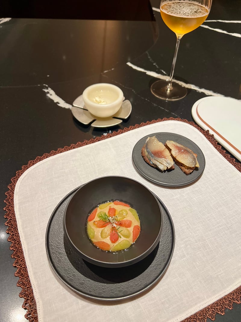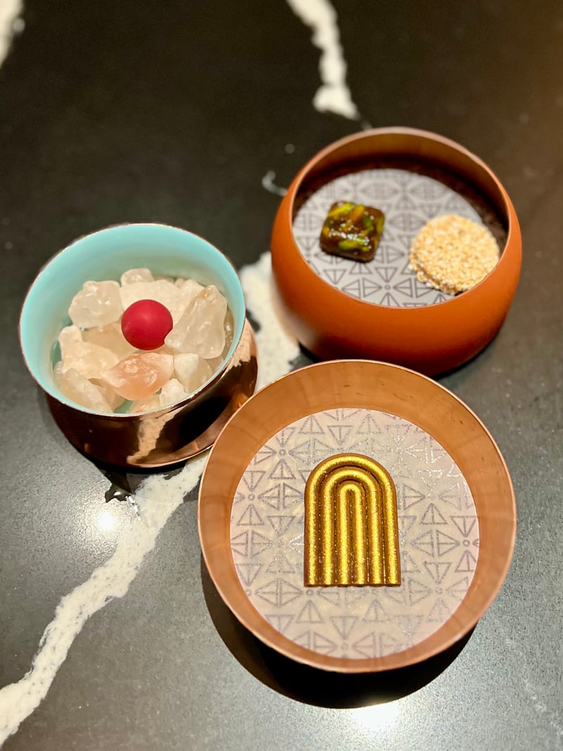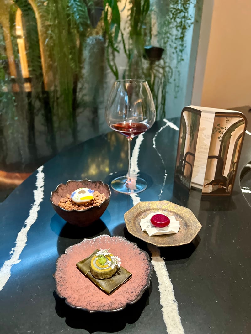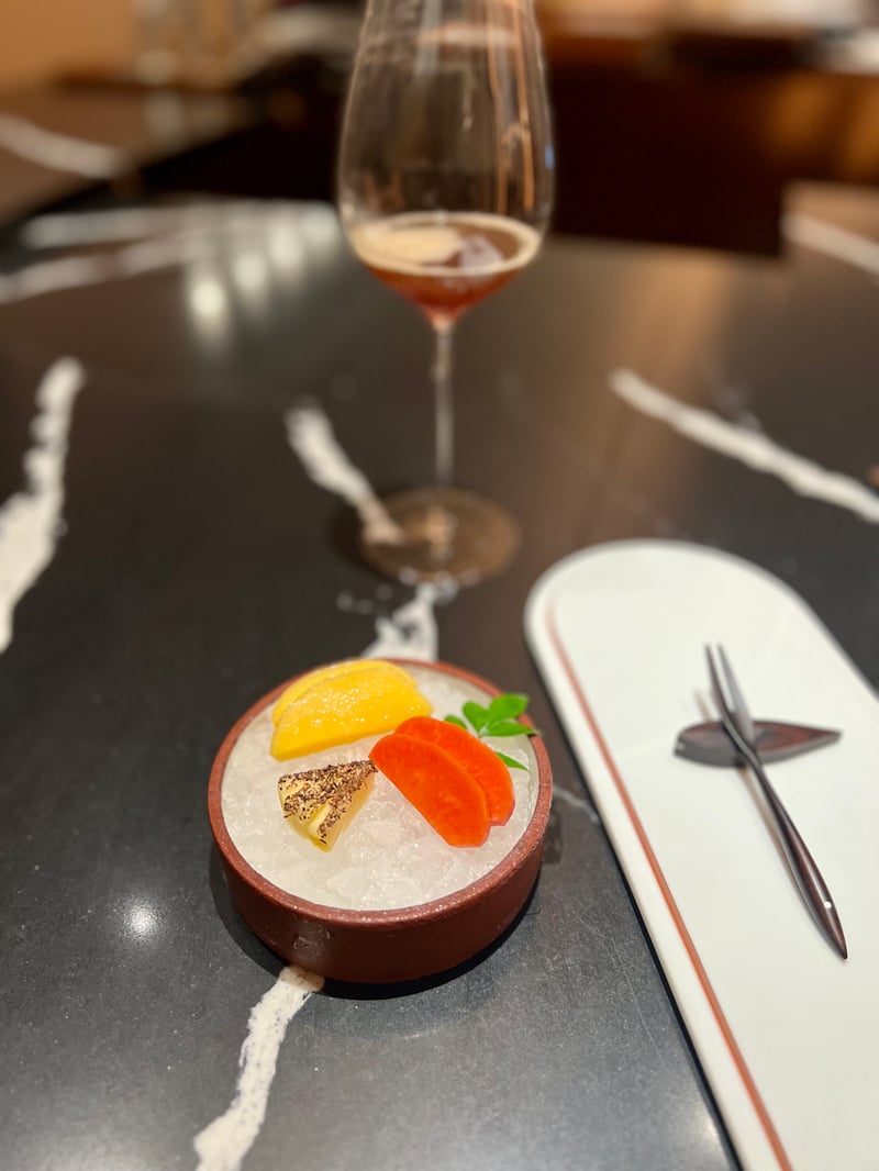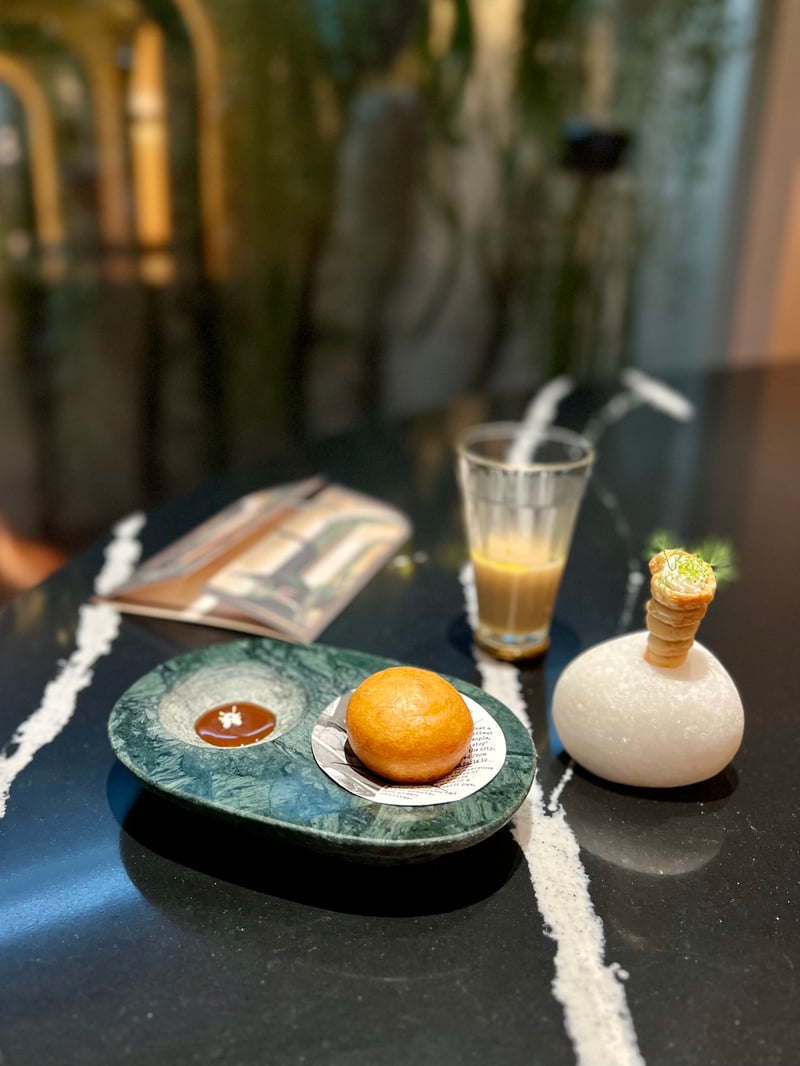 At the heart of this journey through ten distinct destinations, each dish is an ode to local stories and legends, enriched by ingredients that tell of the country's diverse landscapes. Our experience was elevated by carefully selected non-alcoholic food and beverage pairings, allowing us to discover the essence of Indian cuisine in a new light. We had the pleasure of discovering INDDEE the previous year when it held one Michelin star (read our article here: INDDEE, A Poetic Immersion into Indian Haute Cuisine in Bangkok) and we are delighted to discover the new chapter of this now two-starred establishment.