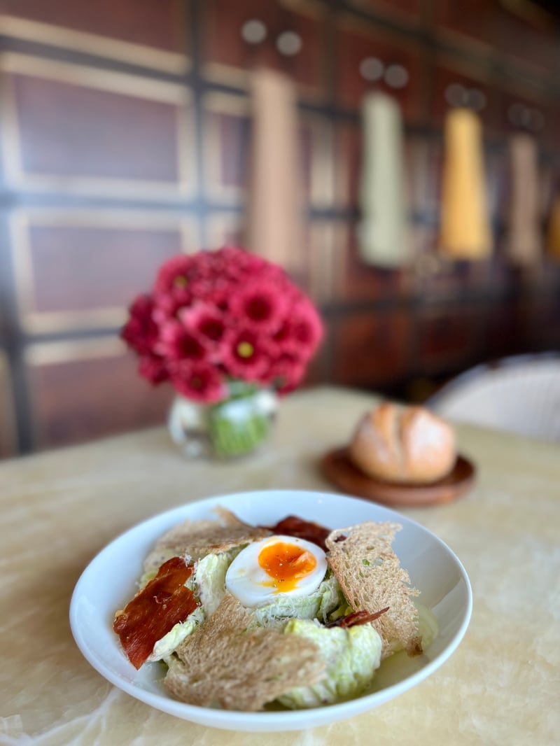 The restaurant also stands out for its exceptional selection of Spanish wines, the most complete in Bangkok, including rare Sherries and Cavas, to perfectly accompany each dish. Bathed in natural light and offering a view of a pool surrounded by greenery, this restaurant embodies a fusion between tradition and innovation in Catalan culinary art. It offers an exceptional experience, from the food to the service, including the music and the general ambiance.