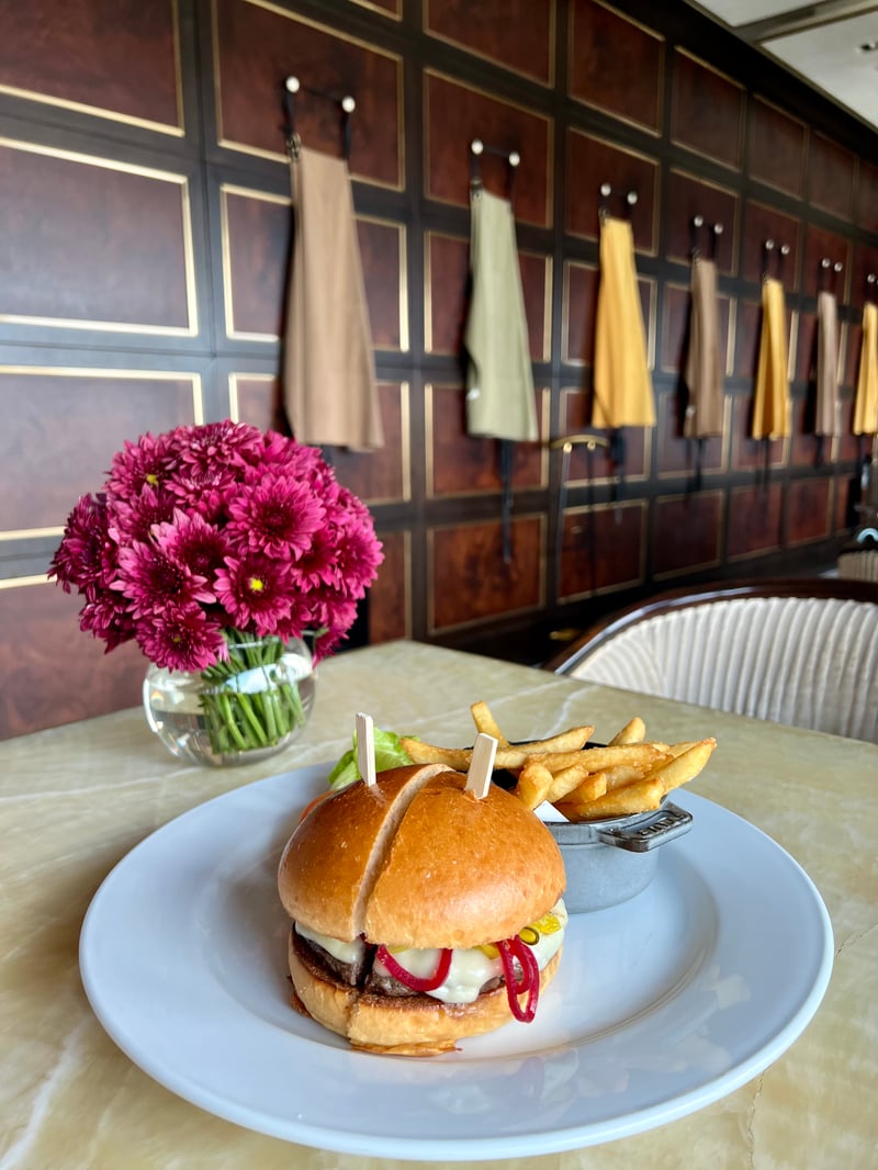 Our lunch was a true culinary symphony, elevated by a breathtaking view. The promise of a varied and enticing menu seduced us. We were tempted by the Set lunch, starting our gastronomic escape with a Caesar salad, eternally chic and timeless, and a tuna tataki with exotic notes of mango, avocado, and gochujang, a bold marriage of flavors. We then opted for modern takes on steakhouse classics: a wagyu beef burger with spicy tomato jam, Emmental, pickles, brioche bun, accompanied by irresistibly crispy fries, and a fish & chips, all executed to perfection. The finale, a revisited rum baba with notes of citrus, spiced rum, pineapple, and coconut whipped cream, was an ode to indulgence. Each bite was a true pleasure, and we were won over by our lunch!