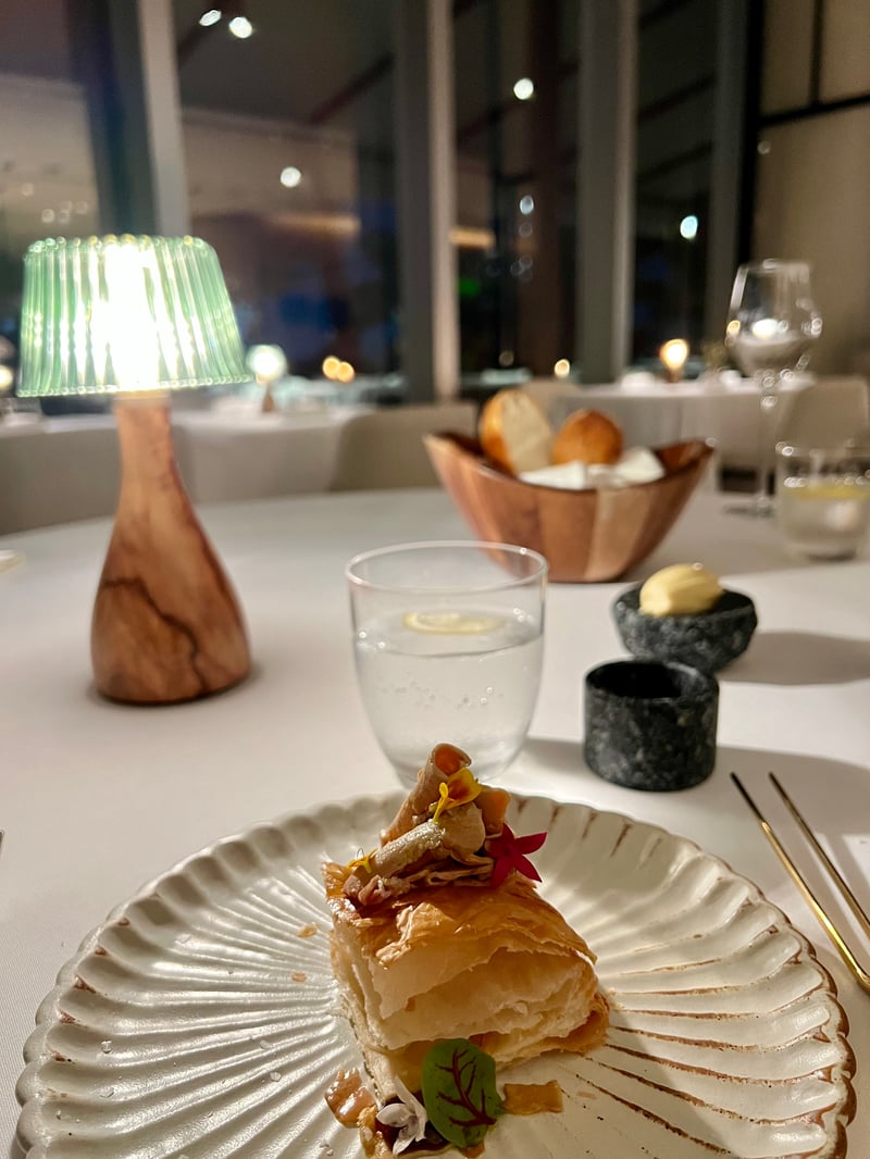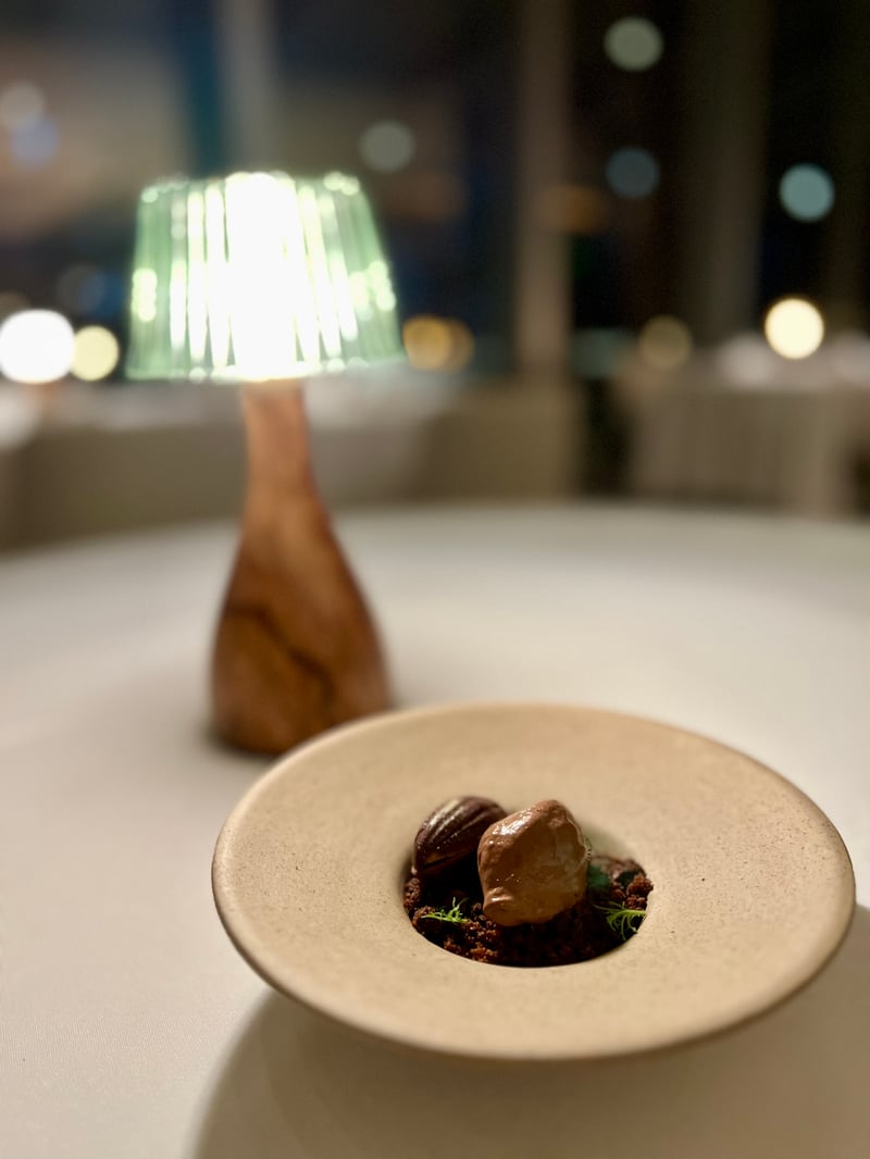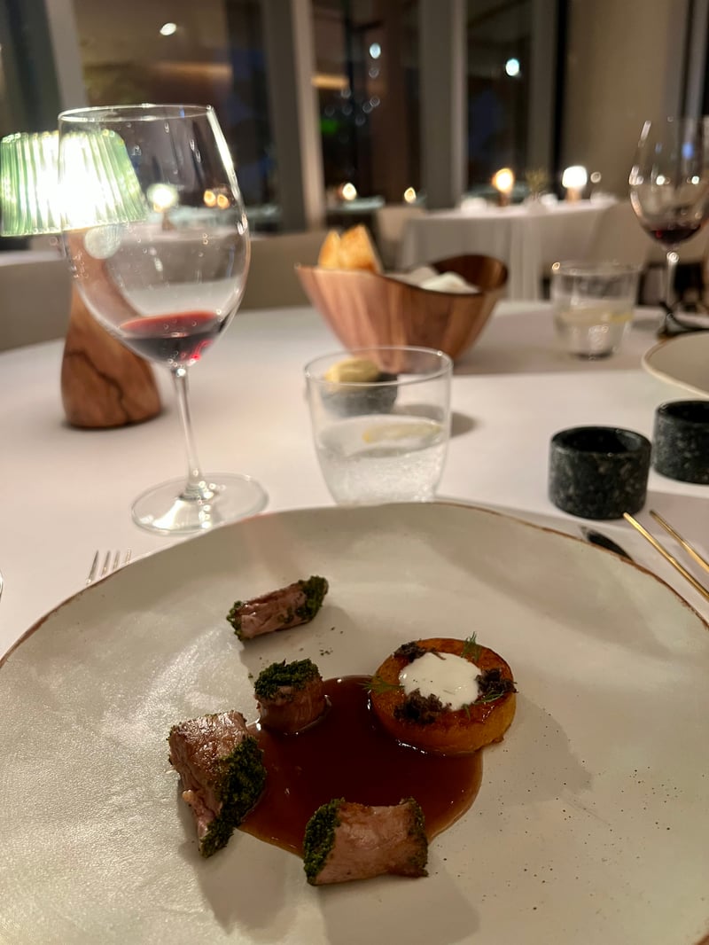 The menu continued on a more comforting note with a dish of winter truffle, mushroom, egg, and Idiazabal cheese, a combination that was both simple and deeply comforting. A big favorite for the following dish, razor clams, maccheroncini, pork, and plankton, whose vivid flavors particularly marked me. Opting for the Iberian lamb with pumpkin and vanilla as the main course, we were transported by the tenderness of the meat and the balance of the accompaniments.