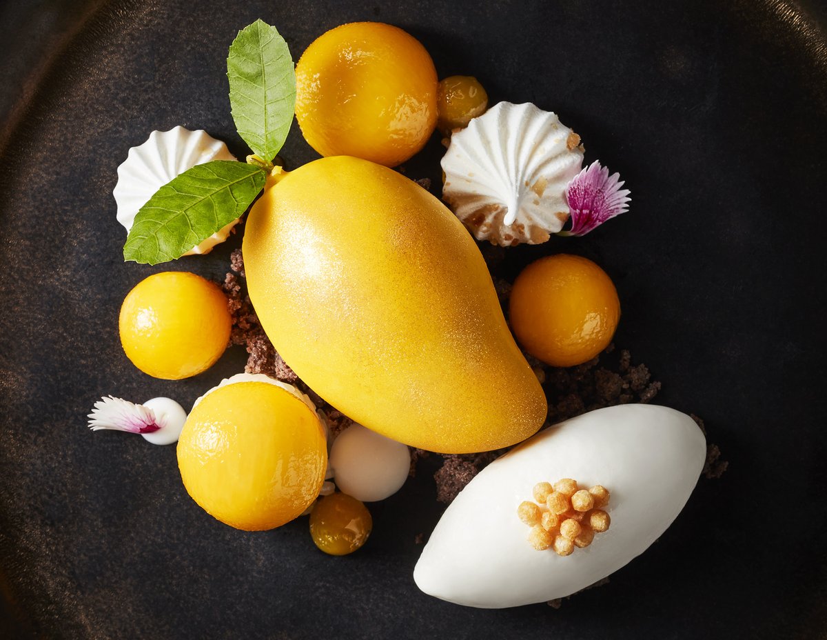 For dessert, R-HAAN once again showcased its mastery of detail. The Triple Mango Sticky Rice, featuring three varieties of premium Thai mango, was paired with coconut milk ice cream and a delicate meringue—a refined take on a classic. Then came the 110 Sang Kha Ya, a velvety Thai pumpkin custard encased in white chocolate, enhanced by black sticky rice flour crumble and salted caramel. The subtle sweetness and pumpkin notes concluded this culinary journey with a final touch of elegance through a flawlessly executed trompe-l'œil.