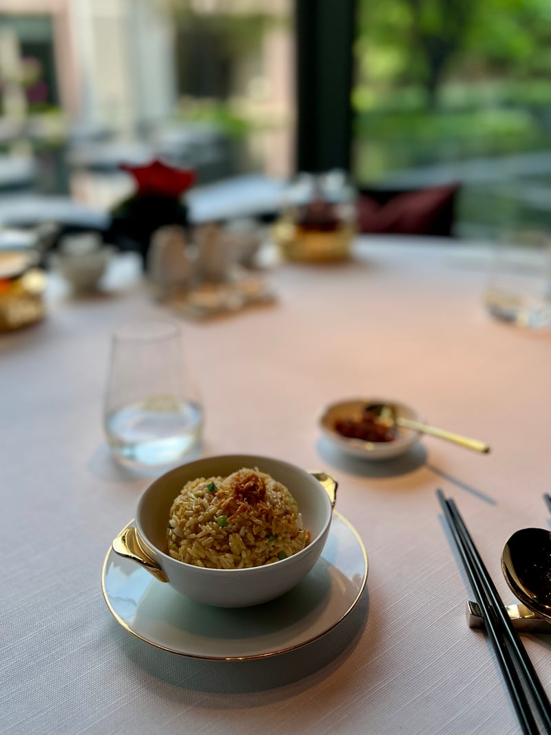 The poached spinach in supreme broth managed, against all odds, to convert even the most reluctant vegetable eaters, proving that simplicity, when executed to perfection, can compete with the most sophisticated dishes. The fried rice with lobster and scallops in XO sauce was another highlight, blending richness and delicacy.