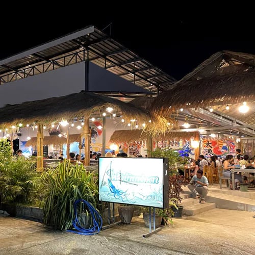 Vines and trailing plants frame this breezy seafood house where the kitchen's coastal repertoire spans shrimp, squid, and crab prepared multiple ways. The stir-fried squid lacquered in its own black ink commands attention, while whole crab tossed with curry powder invites hands-on shelling at the table. A sweet local seasoning threads through each dish, amplifying the ocean's natural umami against a laidback, garden-wrapped backdrop.
