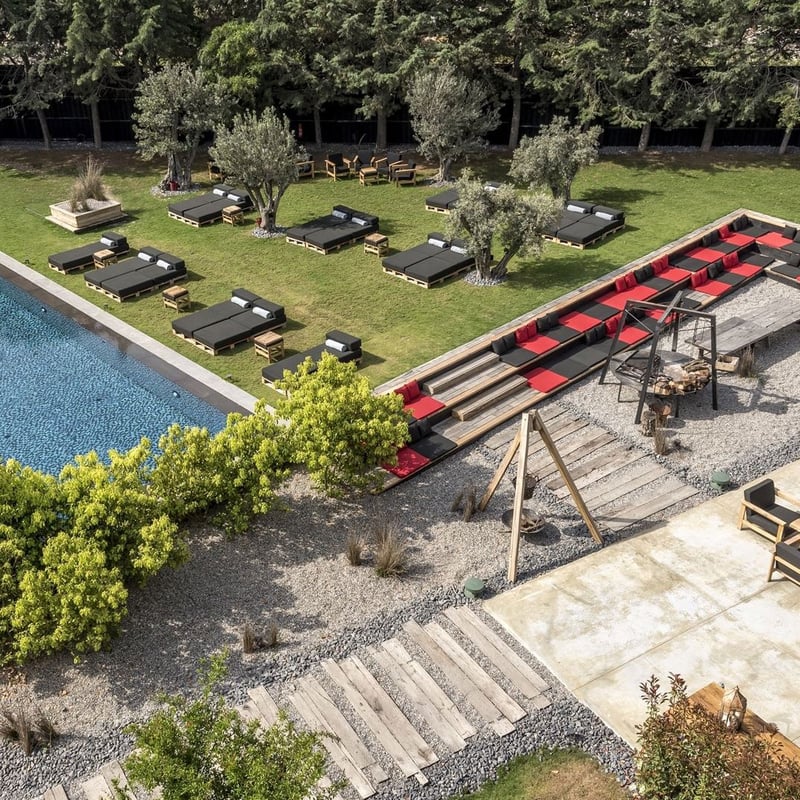 A converted 1980s warehouse on the Çeşme peninsula, this adults-only retreat preserves its industrial bones—red-brick walls, soaring roofline, oversized factory windows—while hosting film screenings, concerts, and an arts library within. The 24 garden-facing suites feature turntables, Smeg minibars, and espresso machines, striking an urban-rustic balance. Shuttles connect guests to Alaçatı's cobbled streets and the private Plage Isolée beach club.