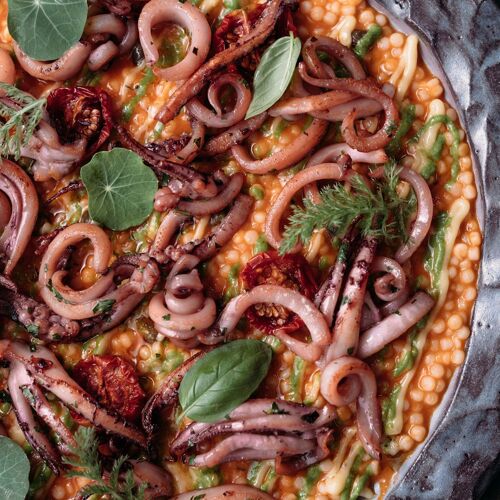 Live lobster and oyster tanks greet diners at this open-air Alaçatı address, where Mediterranean spirit permeates mosaic-tiled surroundings and a menu devoted to the sea's bounty. The kitchen demonstrates restraint and precision—squid arrives with ideal firmness and calibrated seasoning, while impeccably fresh shellfish finds its match in al dente tagliatelle. A Michelin Plate holder serving creative coastal cuisine with honest execution.