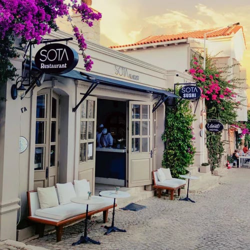 Chef Osman Serdaroğlu's one-starred table occupies a stone building amid Urla's vineyards, its terrace surveying the valley below. The kitchen applies Italian-inflected minimalism to Aegean ingredients—oxtail terrine with smoky aubergine, tagliolini brightened by lemon and local olive oil. A Turkish-focused wine list complements the cooking, and a Green Star recognizes the estate's sustainable practices. Guestrooms allow the evening to linger.