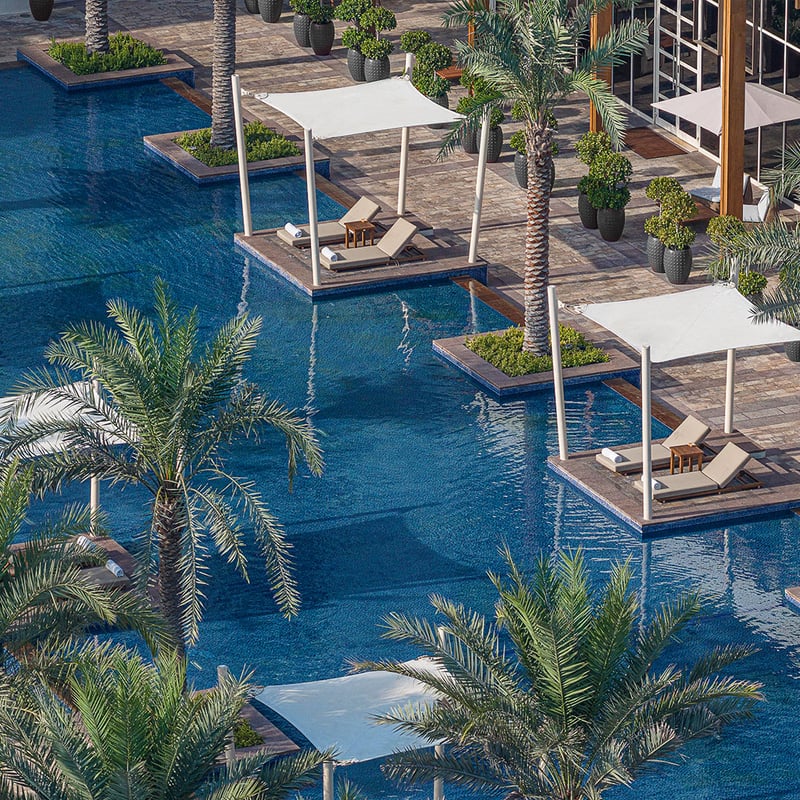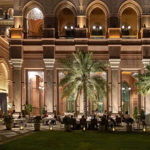 The best hotels cluster along distinct corridors: the Corniche for urban convenience, Saadiyat for art and sand, Yas Island for theme parks and motorsport, and the Liwa desert for remote dune experiences. Dining reflects the city's expatriate mix — Emirati machboos rice dishes share menus with Lebanese mezze, Pakistani biryanis, and Japanese omakase counters. The Al Maryah Island financial district has become a serious culinary hub, its waterfront terraces filling each evening as temperatures drop and the call to prayer echoes across the channel.