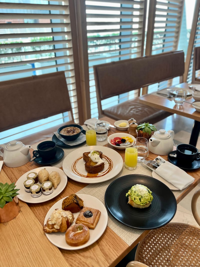 Breakfast, served until 5 p.m., combines generosity and refinement. An à la carte selection offers dishes as healthy as they are inventive—from green scrambled eggs with parmesan and alfalfa sprouts on brioche, to the signature French toast served with peach compote, whipped cream, and date syrup, not to mention barley porridge topped with dried fruits and warm spices. An elegant buffet completes the experience with fresh fruit, golden pastries, and assorted cereals, accompanied by organic coffees and cold-pressed juices.